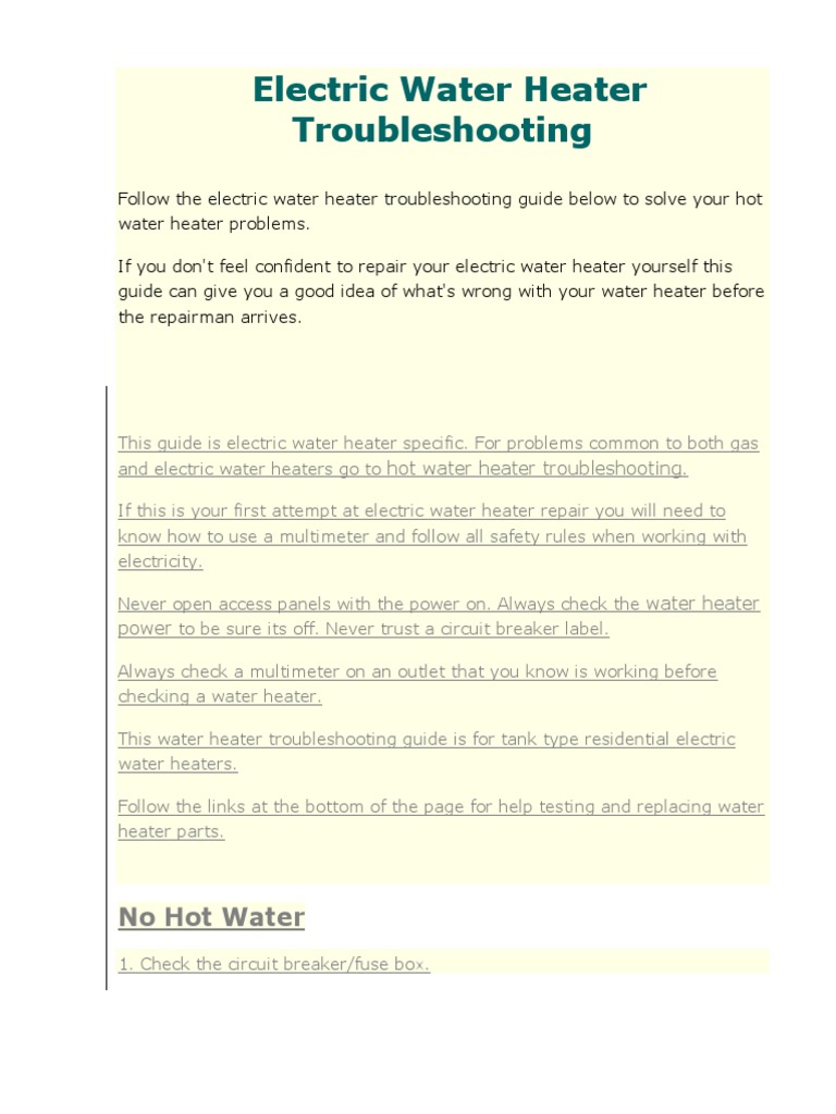 How To Troubleshoot Electric Hot Water Heater Problems