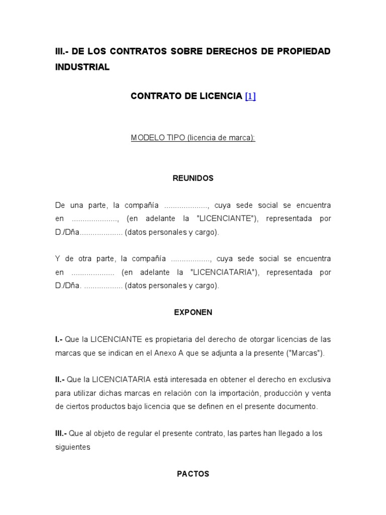 Modelo Contrato Licencia De Marca O Patente Pago De Regalias Contabilidad