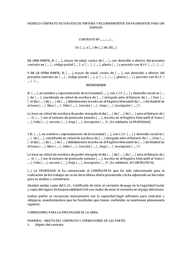 Modelo Contrato De Servicio De Pintura Docx Derecho Laboral Outsourcing