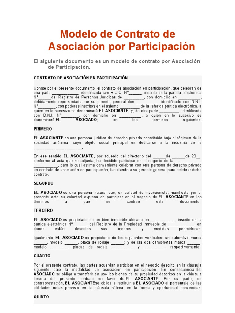 Modelo De Contrato De Asociacion Por Participacion Propiedad Contabilidad